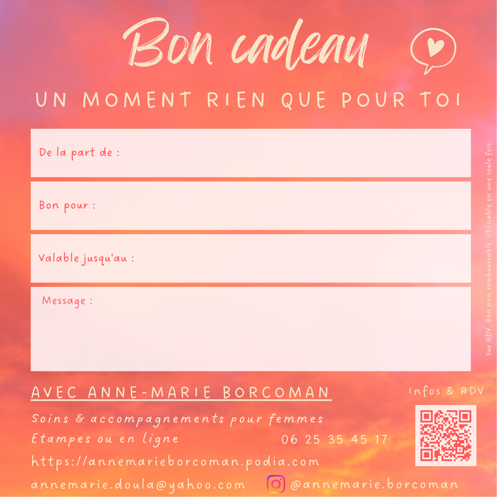 Bon cadeau à imprimer soi-même ou à retirer directement à Etampes. Pas d'envoi.